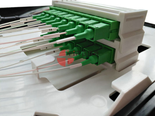 Created with Pixso. 1 एक्स 16 फाइबर ऑप्टिक स्प्लिटर बॉक्स 2 ब्रैकेट पीसी के साथ 2 आउट इनलाइन 72 कोर में