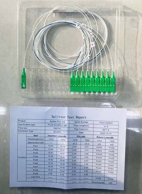 1:9 1x9 70/30 असंतुलित फाइबर ऑप्टिक पीएलसी स्प्लिटर सिंगल मोड एससी एपीसी G657A1 1 मीटर