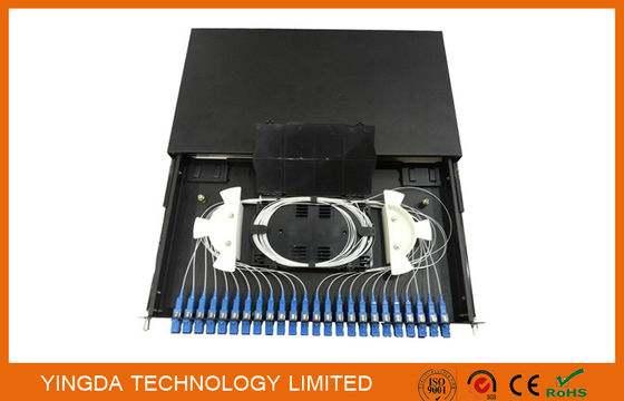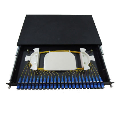 मानक धातु स्लाइडिंग ट्रे फाइबर ऑप्टिक 19 ¢ पैच पैनल 12 / 24 पोर्ट फाइबर ऑप्टिक वितरण बॉक्स GPSM-1U / 2U / 4U