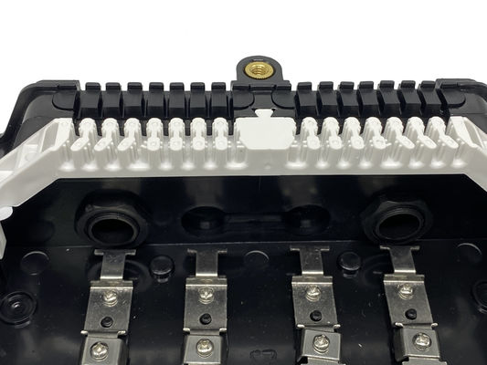 स्टेनलेस ब्रैकेट पर केबल को फिक्स करने के लिए केबल क्लैंप हैं, कुल 4 पीसी केबल प्रवेशः 1 अनकट पोर्ट (मिड स्पैन) और 2 केबल ग्रंथियां, 16 पीसी ड्रॉप केबल आउटपुट।