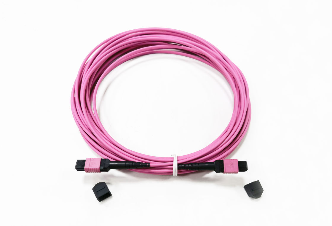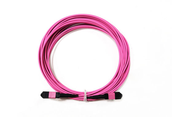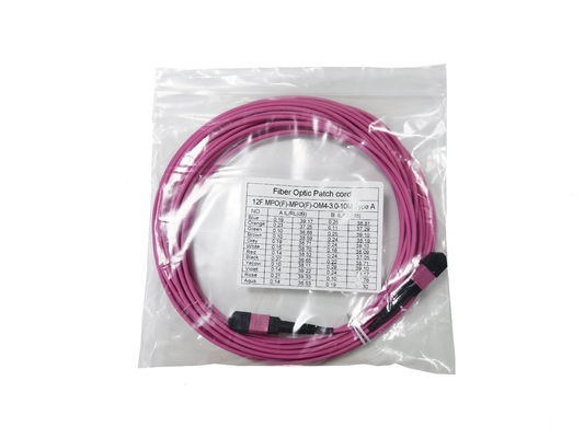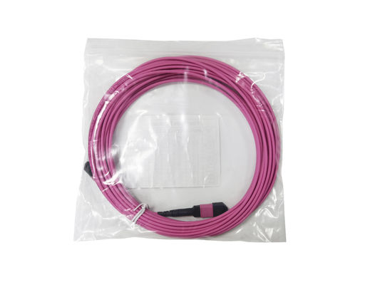 12 फाइबर एमपीओ महिला कनेक्टर पैच कॉर्ड OM4 50/125um एलीट हानि 0.35dB बैंगनी ध्रुवीयता ए