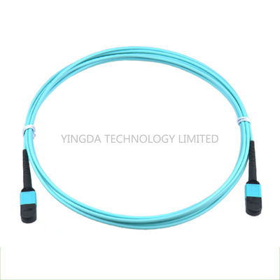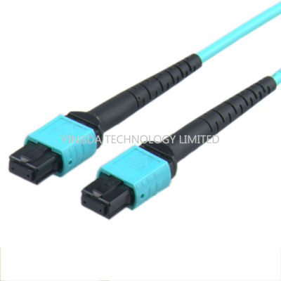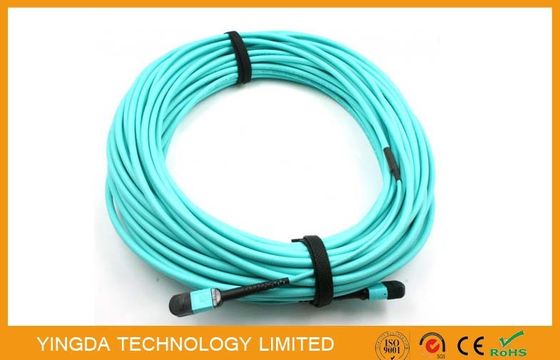 12 फाइबर OM3 10Gig MTP MPO केबल हैrयह एक्वा ब्लू रंग की जैकेट के साथ 12 फाइबर स्ट्रैंड्स से लैस है।