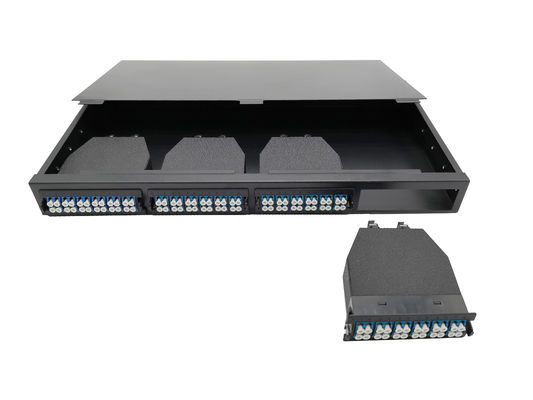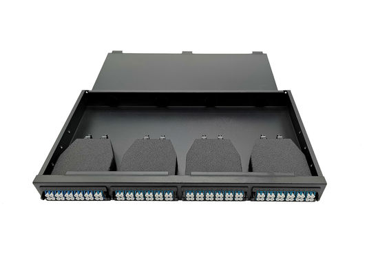1यू रैक माउंट एमटीपी एमपीओ पैच पैनल 19 इंच ओडीएफ फाइबर ऑप्टिक 4 कैसेट एमपीओ एलसी केबल