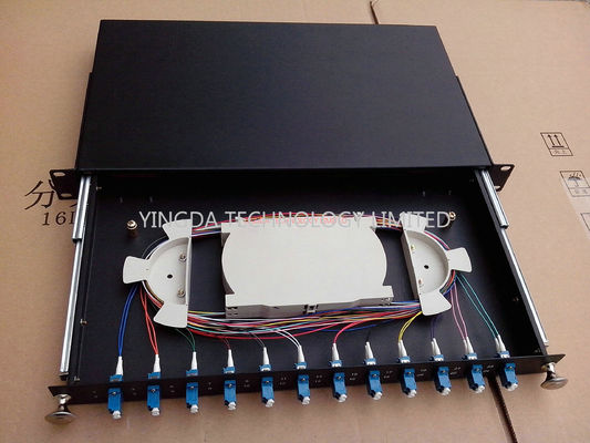 1U 19 इंच स्लाइडिंग रैक माउंट फाइबर ऑप्टिक पैच पैनल 12 पीor LC डुप्लेक्स दराज ODF