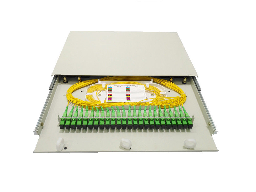 24 पोर्ट एससी एपीसी कनेक्टर 19 "ओडीएफ फाइबर ऑप्टिक पैच पैनल वितरण फ्रेम सफेद धातु रैक माउंट
