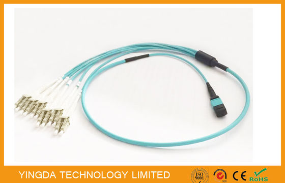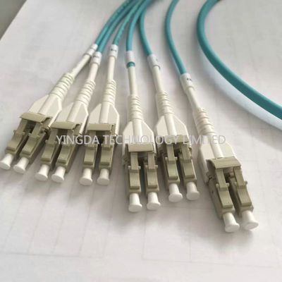 100G OM3-300 QSFP MPO एमटीपी केबल 6 x एलसी डुप्लेक्स यूनिबूट कनेक्टर एक्वा के साथ