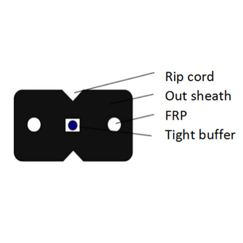 एफटीटीएच केबल सीधे अपने घरों से जुड़े हैं, उनके बैंडविड्थ, तरंग दैर्ध्य और संचरण प्रौद्योगिकी प्रकार प्रतिबंधित नहीं हैं। तंग बफर केंद्र में स्थित है, फाइबर प्रकार विभिन्न हैं,G652D, G657A1, G657A2, या G657B3, आदि दोनों पक्षों पर रखा 2pcs समानांतर शक्ति सदस्य हैं, सामग्री ग्राहक के अनुरोध के रूप में GFRP, FRP, KFRP या अरामाइड यार्न (Kevlar) हो सकता है,शक्ति सदस्य का आकार 0 हो सकता है.4 मिमी, 0.45 मिमी या 0.5 मिमी.केबल का एक काला या रंगीन LSZH शीट है।