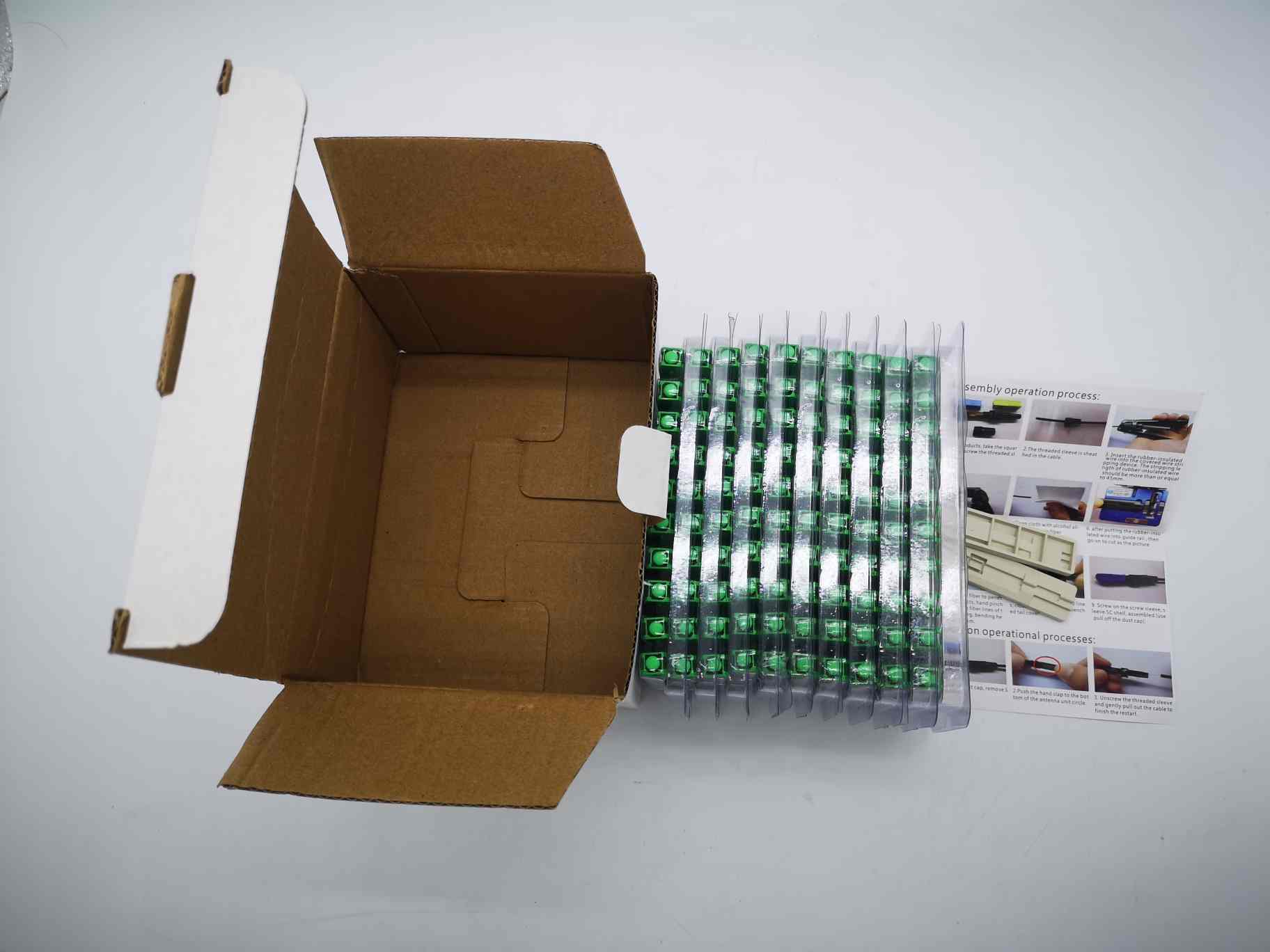 ऑप्टिकल डिस्ट्रीब्यूशन बॉक्स को कुंजी और बक्से के साथ पूर्ण रूप से वितरित किया गया है। पूरे ऑप्टिकल फाइबर बॉक्स को वाटरप्रूफ सुरक्षा के लिए नीचे सफेद रंग की रबर की अंगूठी से सील किया गया है, जो IP65 ग्रेड तक है।आंतरिक एलजीएक्स स्लॉट के एडाप्टर प्रकार हो सकता है.