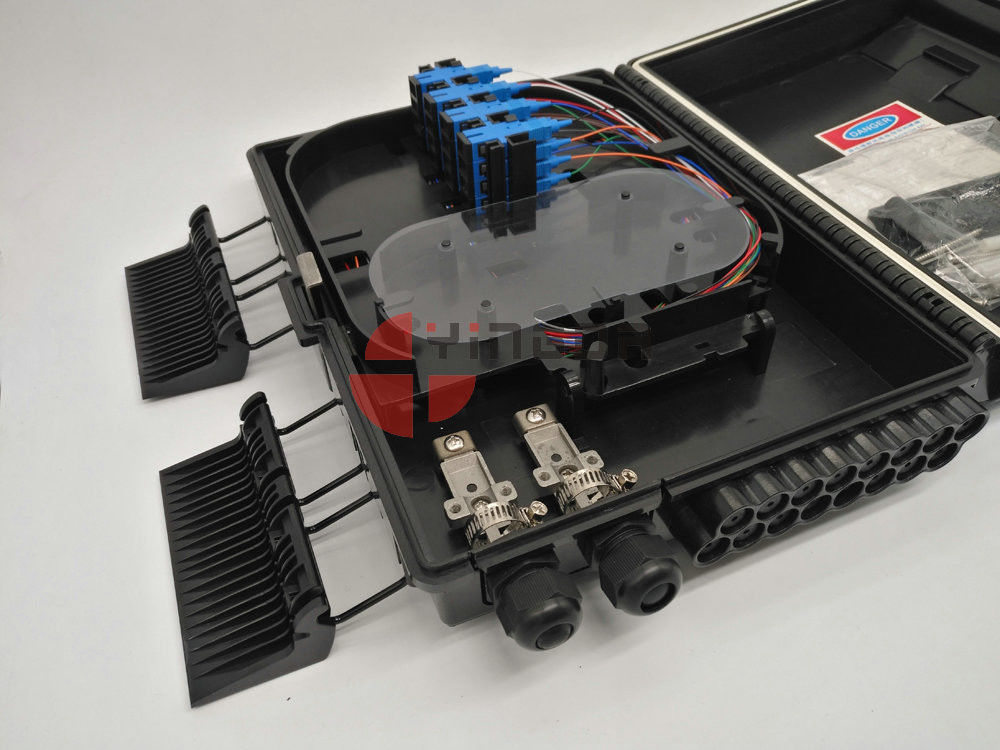 FDB0216G 16 पोर्ट टर्मिना बॉक्स का उपयोग व्यापक रूप से फीडर केबल के लिए ड्रॉप केबल के साथ समाप्त करने के लिए समाप्ति बिंदु के रूप में किया जाता है। फाइबर विभाजन, विभाजन, वितरण इस बॉक्स में किया जा सकता है, और तब तक यह एफटीएक्स नेटवर्क निर्माण के लिए ठोस संरक्षण और प्रबंधन प्रदान करता है। इनडोर या बाहरी इस्तेमाल किया जा सकता है